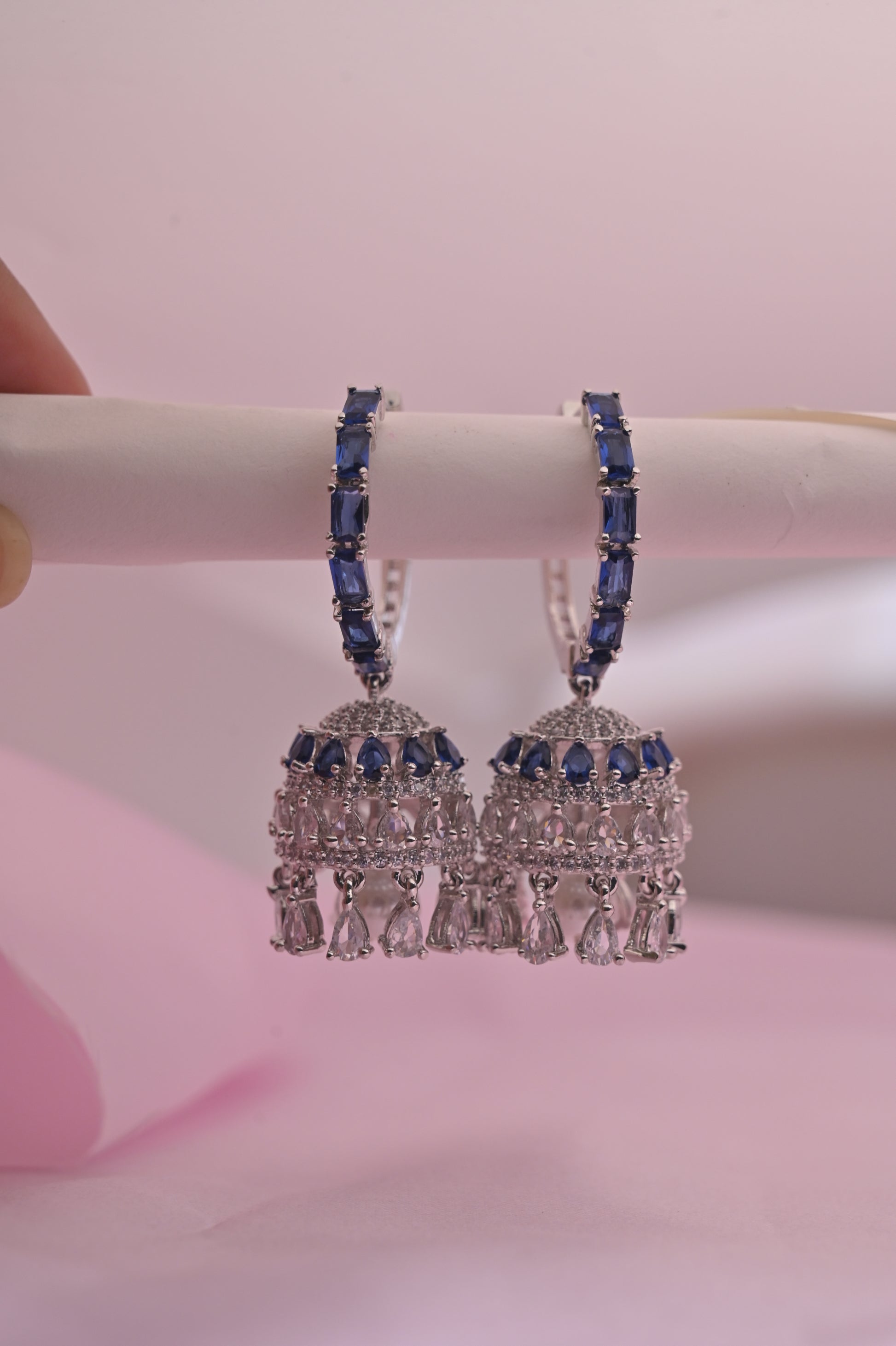 Bold in Blue — these jhumkis are a perfect blend of elegance and charm. Adorned with soft pink stones and intricate detailing, they add a feminine touch to your festive or party look. Lightweight yet statement-making, these earrings bring the right hint of sparkle to every occasion.