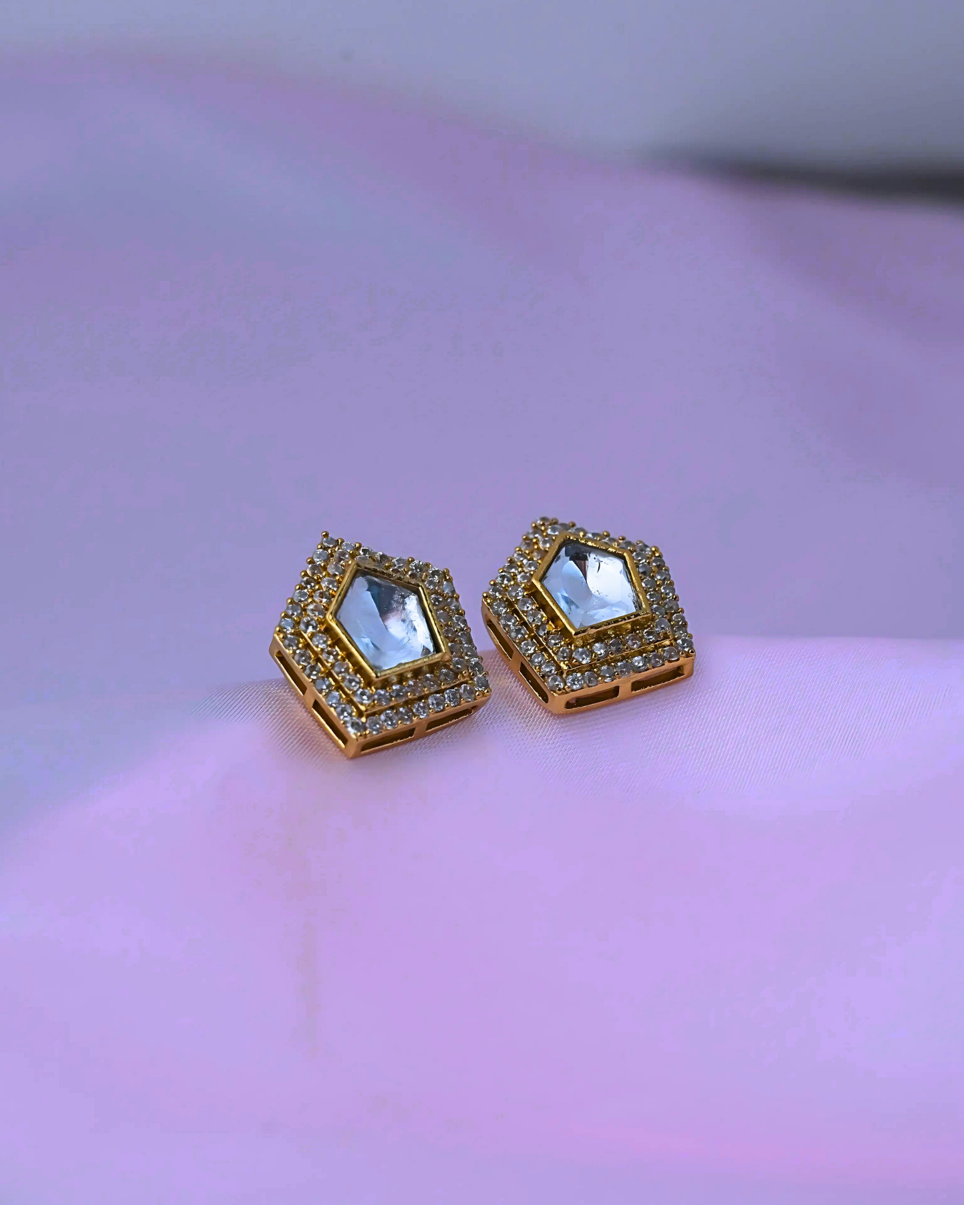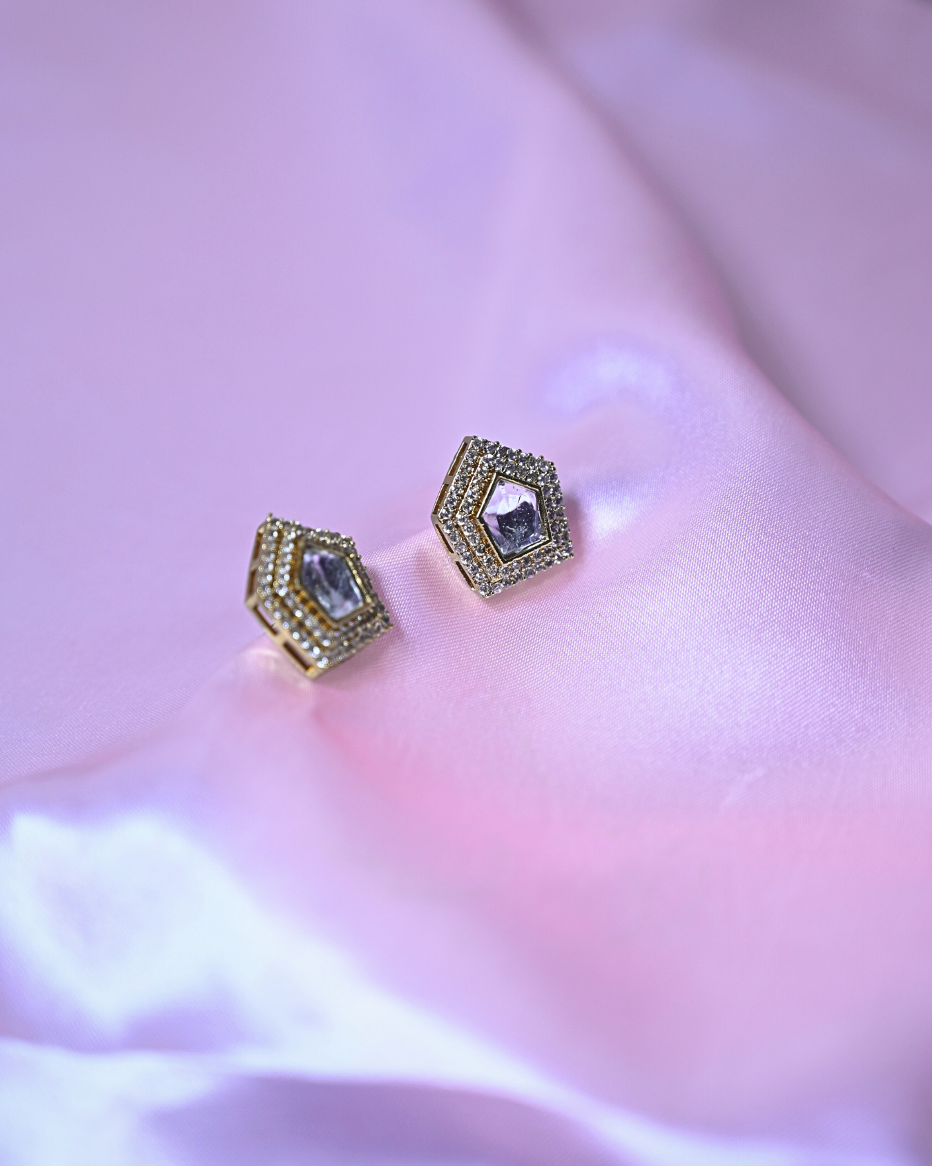 Add a touch of sophistication to your look with these beautifully crafted hexagon-shaped earrings, designed with sparkling stones and a golden anti-tarnish finish that stays radiant for longer. Perfect for festive, bridal, and party wear styling.