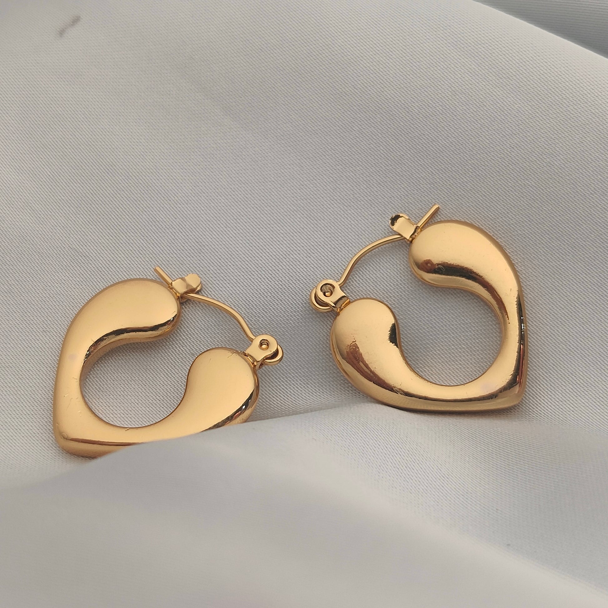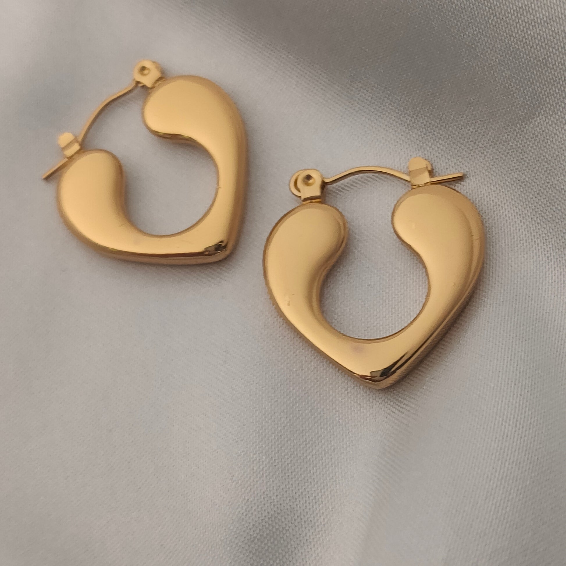 Bold yet romantic, the Golden Whisper Hoops feature a heart-inspired, abstract silhouette that adds a soft edge to your everyday style. These sculpted earrings bring a modern twist to classic gold hoops — perfect for those who love minimalism with a hint of flirt.