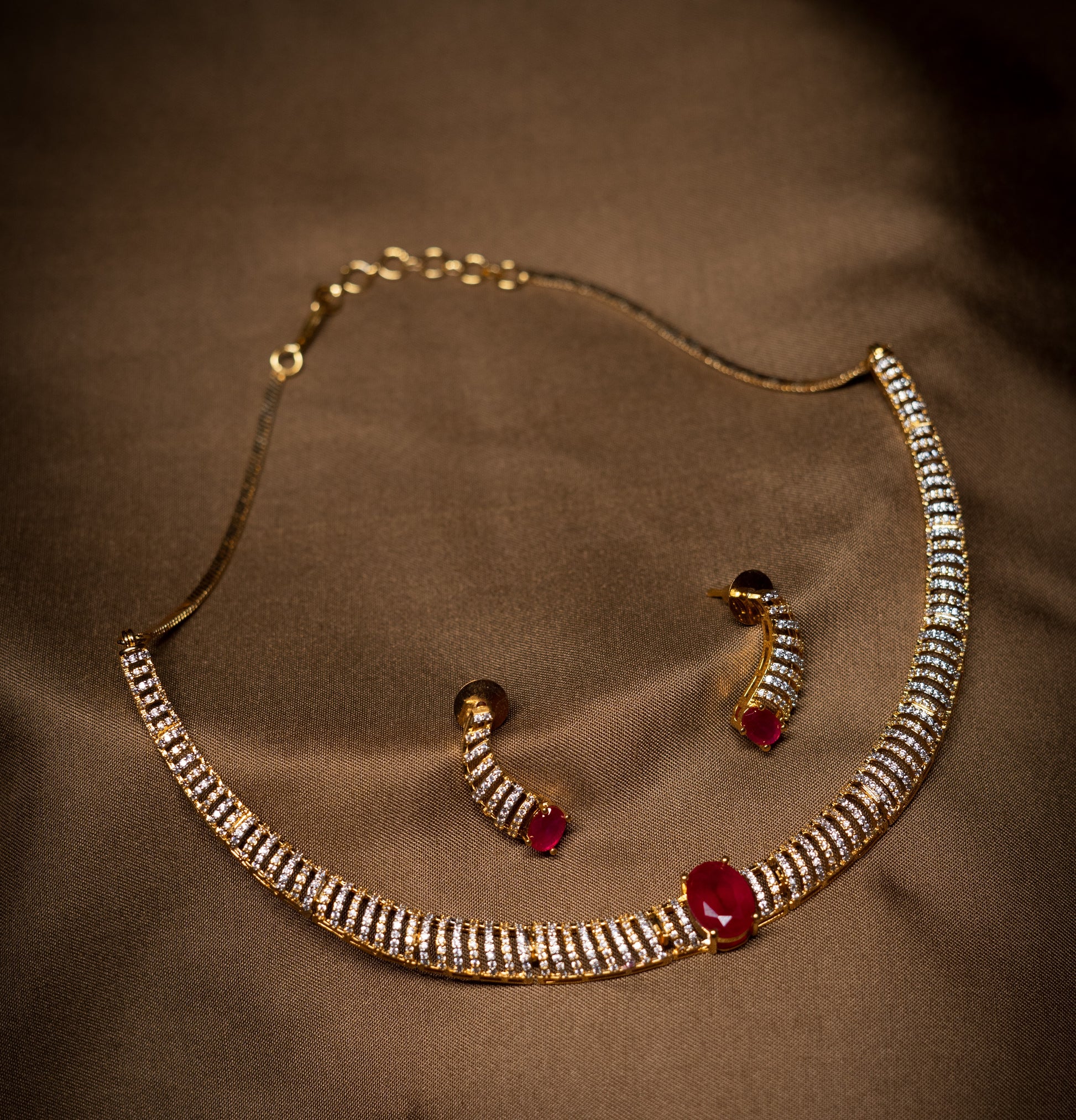 For a more modern twist, style it with a solid-coloured gown or chic indo-western outfit — let the ruby stone be the highlight.