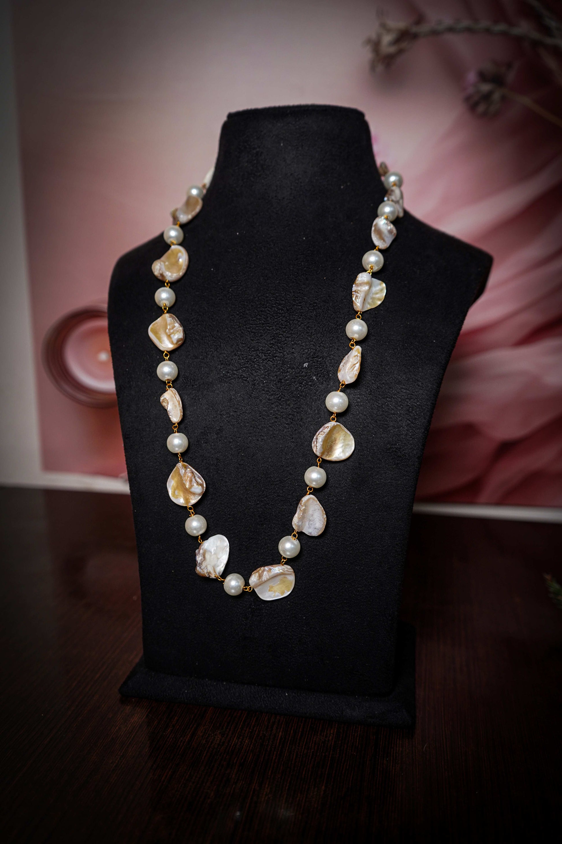 A timeless treasure — this Mother of Pearl Necklace radiates natural elegance with its soft iridescent sheen. Each pearl captures light beautifully, giving a dreamy glow that complements every skin tone. Handcrafted with precision, this piece embodies sophistication, calmness, and feminine grace — perfect for both everyday luxury and special occasions.