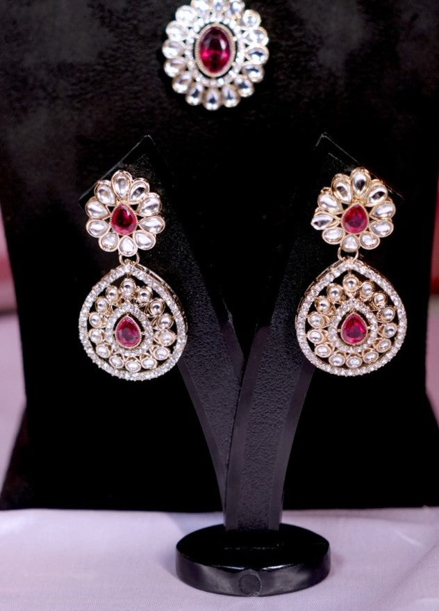 The soft pink tone pairs beautifully with pastels, ivory, and floral-printed outfits for a graceful, feminine vibe. For festive occasions, wear it with lehengas or sarees in gold, mint, or lavender. The double pendant design makes it a statement piece, so keep other jewellery minimal—delicate bangles or a ring will complete the look without overpowering it. For a chic twist, style it with a plain white or blush gown.