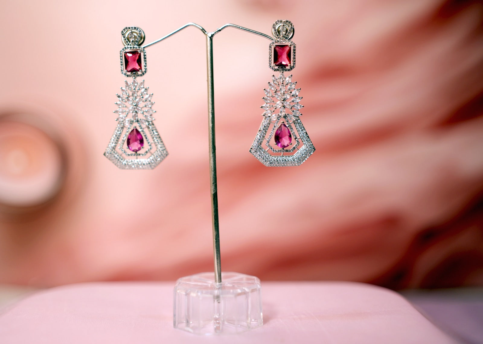Elevate your elegance with these American Diamond Silver Earrings, crafted to perfection with sparkling AD stones set in a sleek silver finish. Their timeless shine and lightweight comfort make them the perfect pick for weddings, parties, or everyday glam.