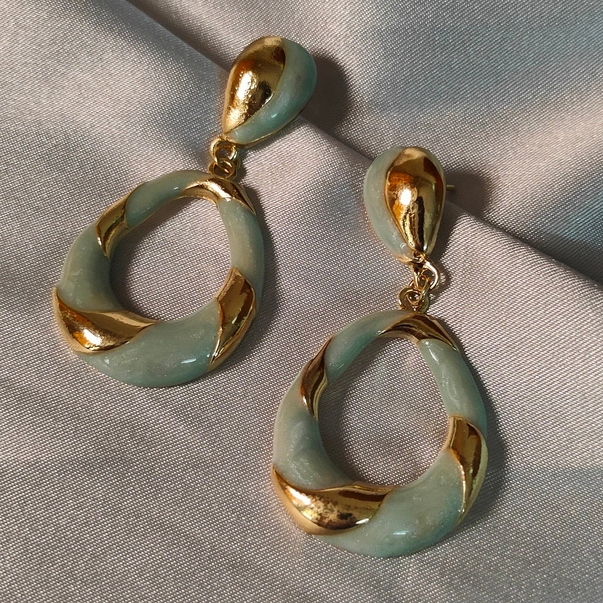 Bold yet graceful, the Talia Hoops features a marbled swirl of blush enamel seamlessly entwined with lustrous gold-tone accents. The open teardrop design dangles freely from a matching top stud, making them perfect for everything from brunches to soirées. These hoops are a statement in feminine charm and modern edge.