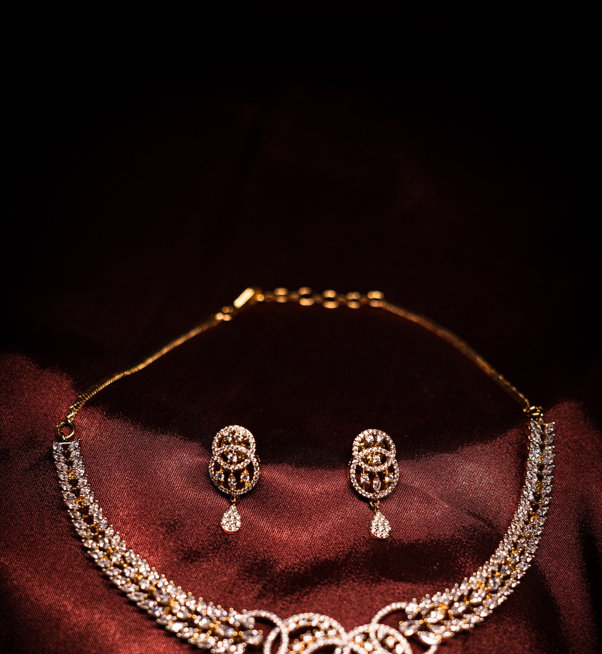 Pair with traditional outfits like silk sarees, lehengas, or designer anarkalis for a royal look. For a chic Indo-western style, wear with a plain gown or pastel saree to let the set be the highlight. Keep the neckline simple to showcase the necklace’s elegance.