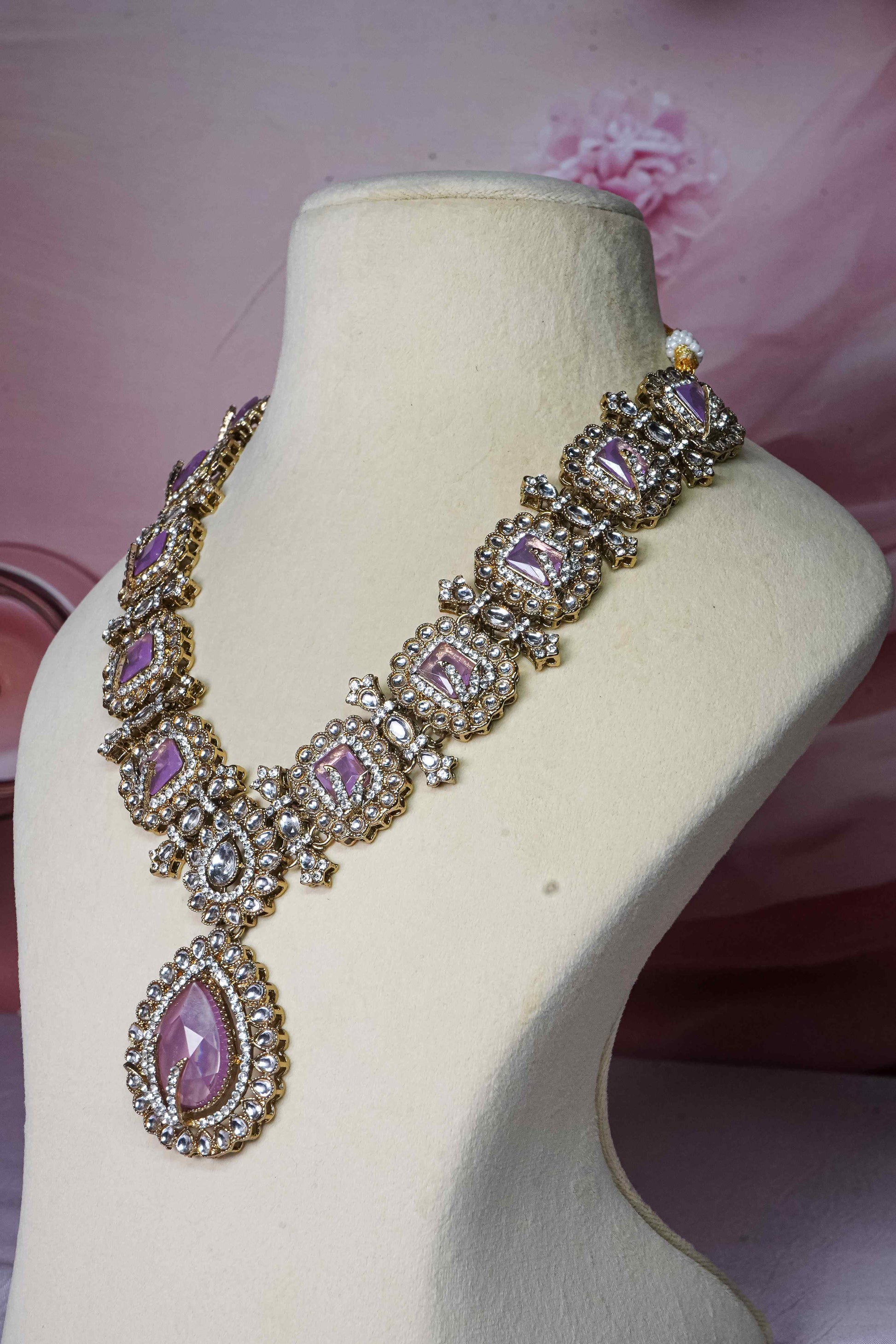 A dreamy blend of sophistication and softness — the Trilume Necklace Set features serene green stones that shimmer with subtle elegance. Its pastel hue inspired with Kundan makes it perfect for those who love a graceful yet modern touch. Each stone reflects calmness and charm, making it a must-have for your statement collection.