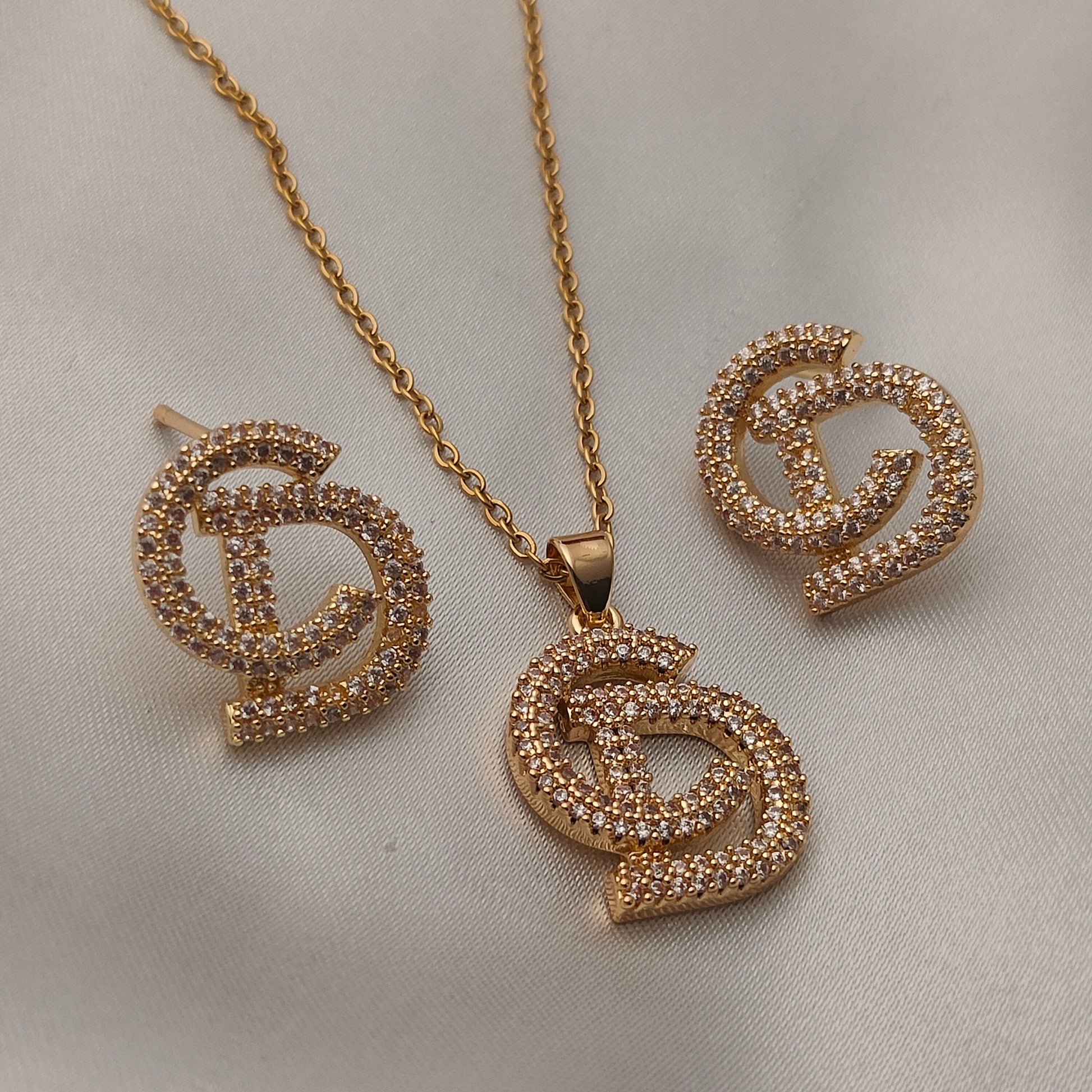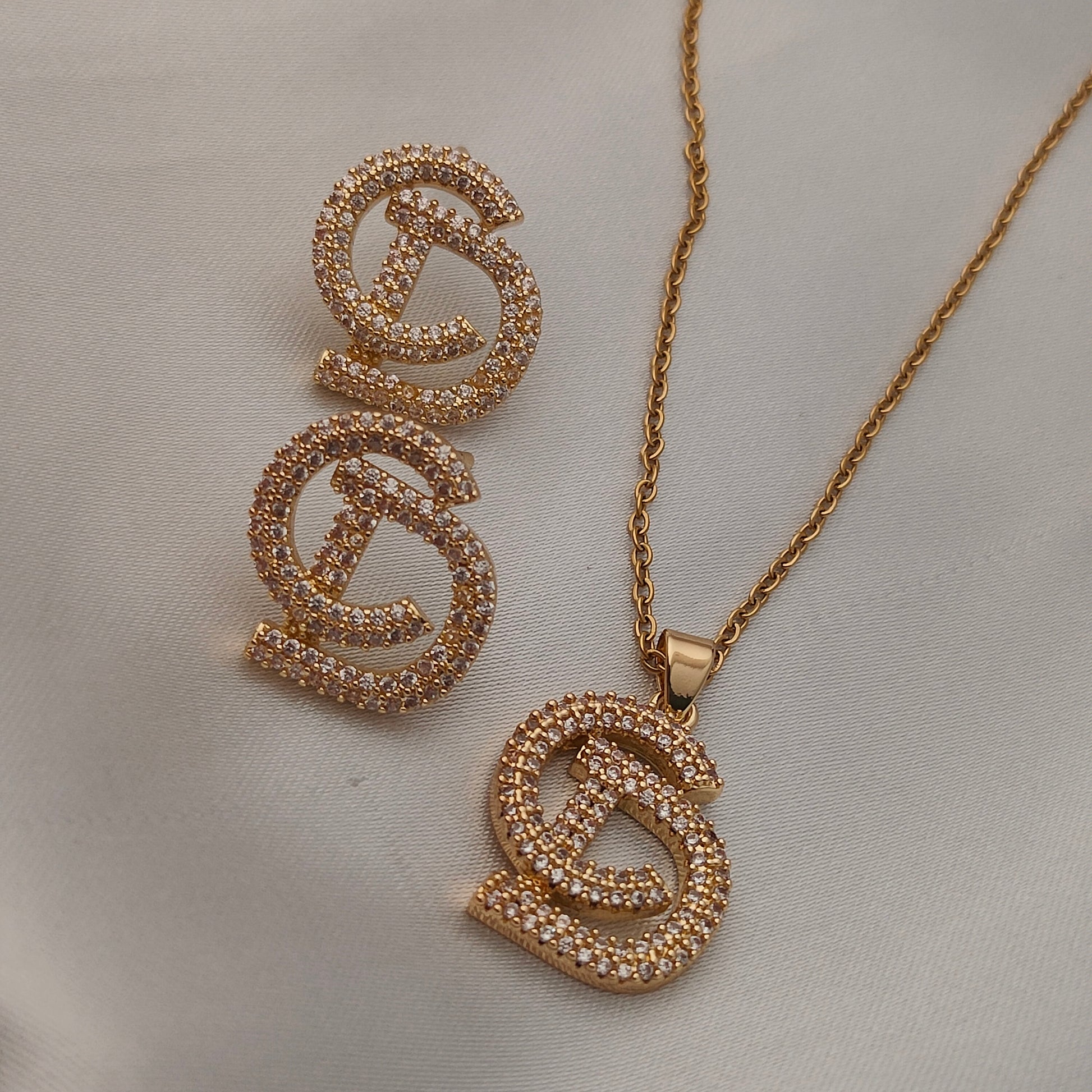 The Twilight Luxe Set is all about unapologetic sparkle and sophistication. With its interlocking letter design encrusted in high-shine cubic zirconia stones, this set gives off strong luxury fashion house vibes. Perfectly balanced between chic and commanding, it’s your go-to for a glam, high-fashion look without the hefty tag.