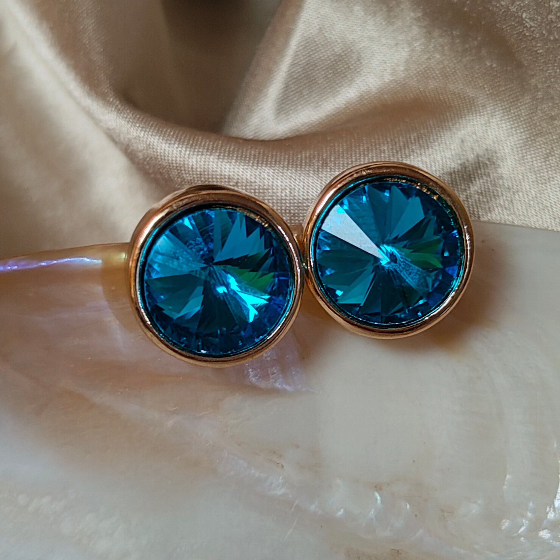 Twilight Teal captures the serene mystery of dusk with its deep blue-green crystals set in a sleek gold bezel. The faceted surface radiates brilliance, echoing the glimmer of twilight skies. Elegant yet striking, these earrings are crafted to elevate any look with a whisper of luxury and a flash of vibrant color.