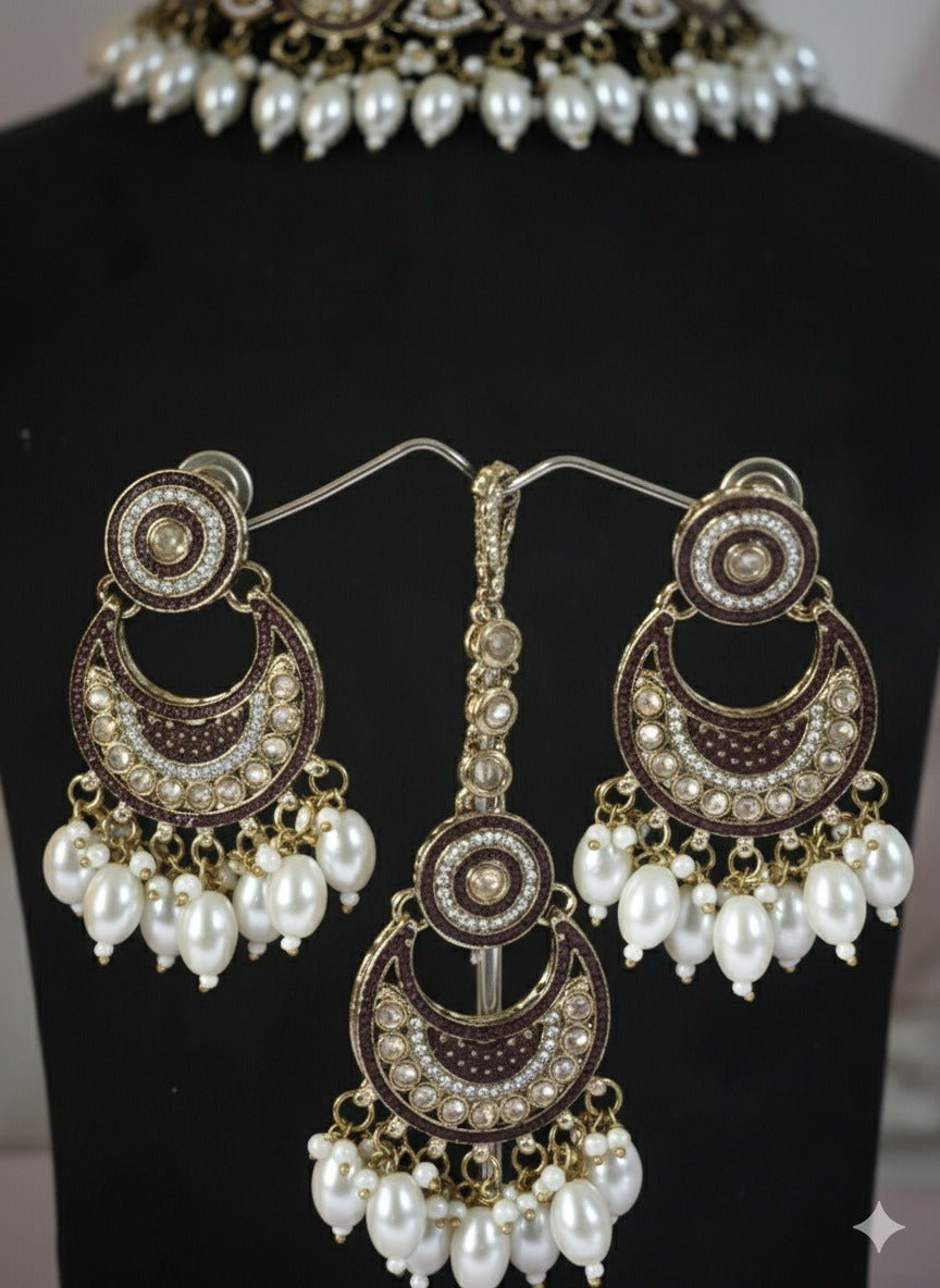 Pair it with a deep neckline blouse, lehenga, or saree to let the choker stand out. Complement it with matching kundan studs or heavy jhumkas for a complete bridal look. Keep the outfit minimal in embellishments if you want the jewellery to be the highlight. Works beautifully with both traditional silks and contemporary Indo-western outfits.