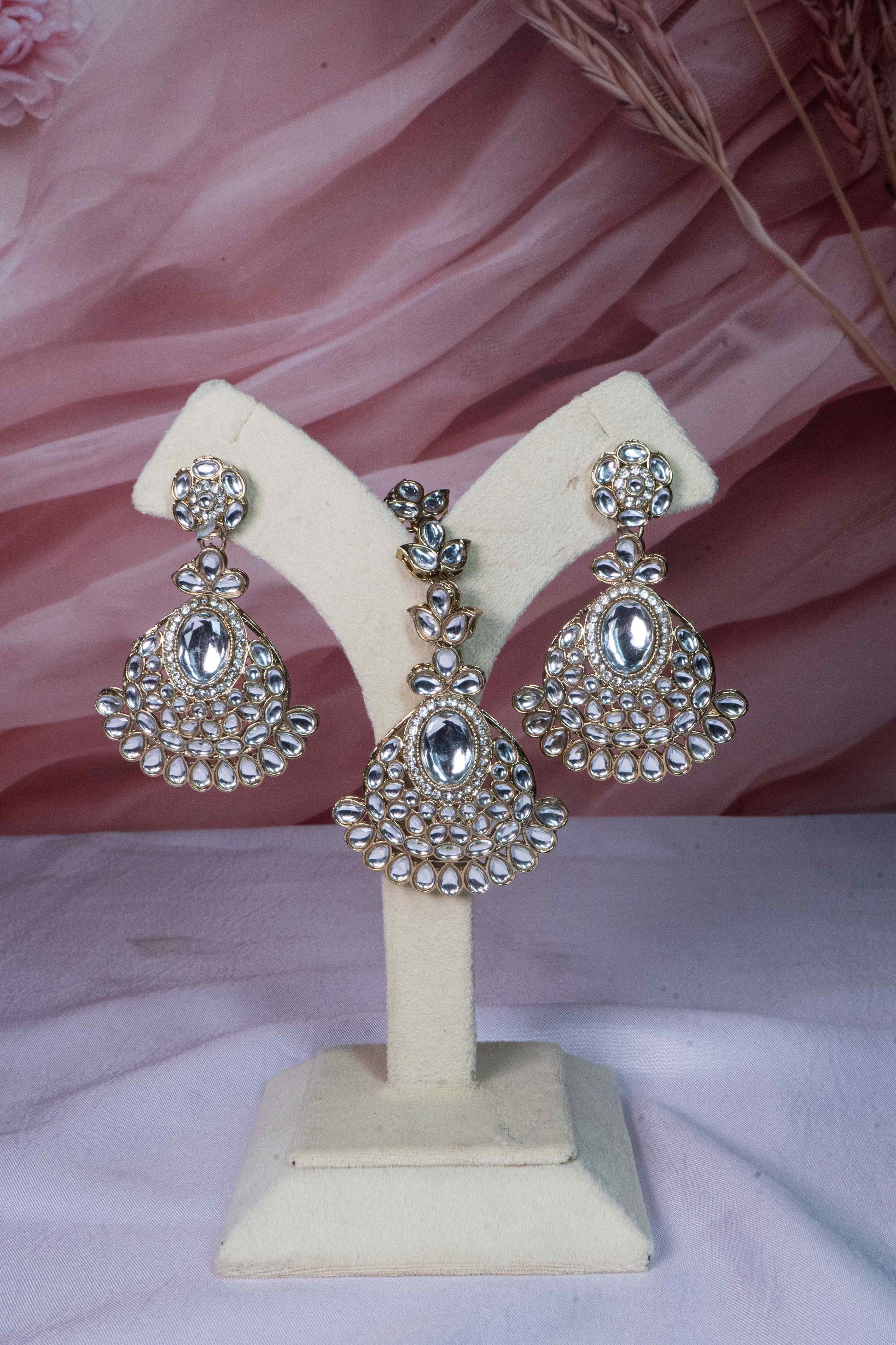 A symphony of grace and glamour — the White Kundan Radiance Set features soft blush stones framed in delicate kundan work. Perfect for those who love understated elegance with a royal touch. Pair it with pastel sarees or fusion fits for a dreamy festive glow.